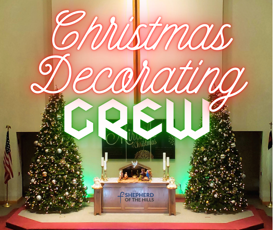 Do you love to decorate and prepare your home for Christmas? If so, we'd love to use your gifts and talents to make Shepherd of the Hills a warm and welcoming place this Christmas season. Join us Tuesday, December 9th, to decorate the trees and and sanctuary. Decorating starts at 5pm. Arrive when you are available. Questions? Contact Jennifer: Hospitality@sothpewaukee.org